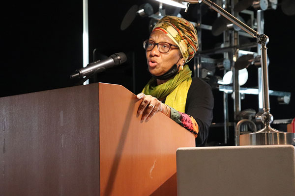 Turiya Abdur-Raheem reads one of her poems. Photo by Mark Melhorn/Stockton University