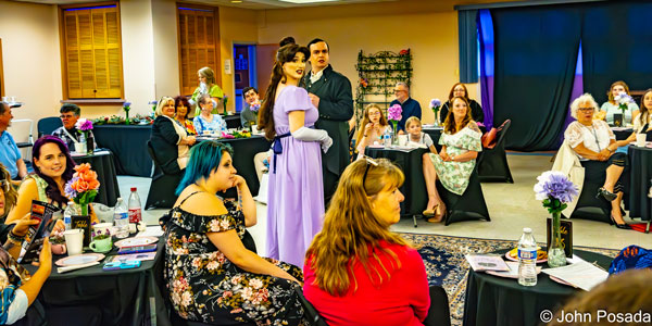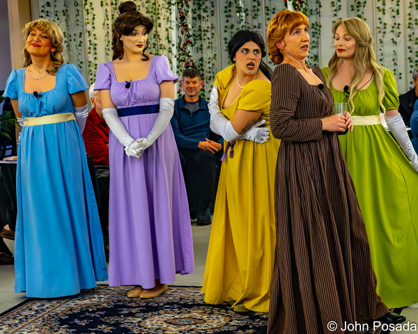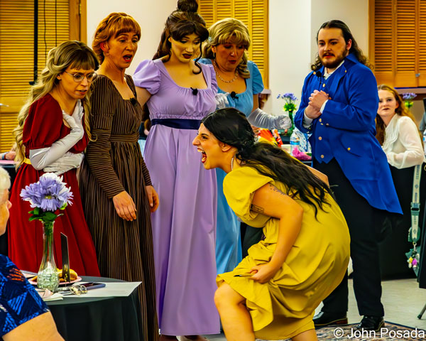 Laughter filled the room from scene one until the very last line, and audiences enjoyed the Bennet family drama while enjoying complimentary cookies, coffee, and tea in a beautifully decorated hall complete with teacups and flowers to celebrate Mother’s Day weekend.