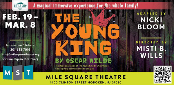 (HOBOKEN, NJ) -- Mile Square Theatre presents The Young King, an imaginative, immersive adaptation of Oscar Wilde's beloved fairy tale, re-envisioned for young audiences and families weekends from February 19 – March 8, 2026. It was adapted by Nicki Bloom and directed by Misti B. Wills. The Young King invites audiences to step inside the story, encouraging reflection and dialogue among children, families, and educators alike.