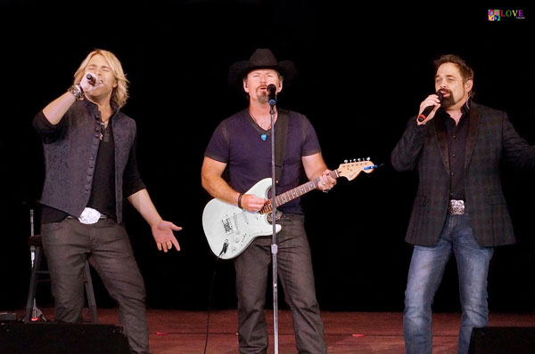 The members of The Texas Tenors’ back-up band — keyboardist Josh Hanlon, guitarist Mitch Kiersey, drummer Ryan Hurn, and bassist/musical director Larry Hanson — take their positions on stage and begin to perform an instrumental overture. As the musicians play, The Texas Tenors — Marcus Collins, JC Fisher, and John Hagen — make their way out onto the stage singing a powerful rendition of Neil Diamond’s “America.” With their voices blending as one, the audience claps along to the trio’s high energy performance, their bold harmonies dazzling the crowd.