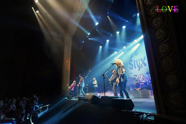 Gowan welcomes the crowd, announcing, “I love this theater!” prior to introducing “one of the founding fathers of Styx,” bassist Chuck Panozzo, who takes the stage as the band performs the group’s 1975 Top Ten power ballad, “Lady.” After Gowan sings, “Lady, when you’re with me I’m smiling,” the song shifts to a march feel and the group struts its way through the “You’re my lady of the morning” refrain where music lovers enthusiastically sing along.