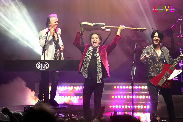 Young’s guitar screams while the band jams on this upbeat rocker which elicits whistles, cheers, hoots, and hollers from the standing crowd and the members of Styx bow, wave, and flash peace signs prior to exiting the stage.