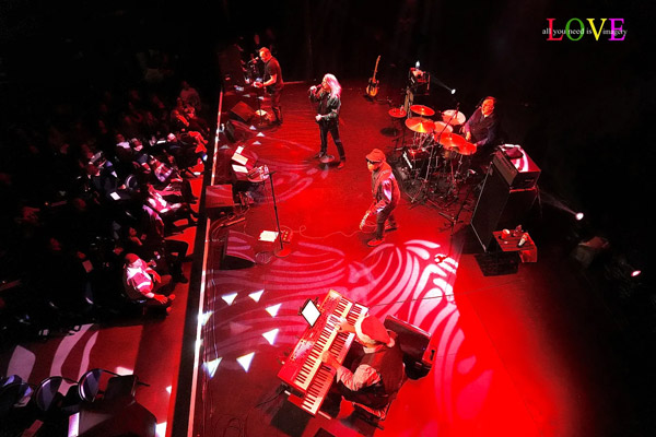 To conclude tonight’s performance, concertgoers stand and dance as Cowsill sings, “I want to love, but it comes out wrong/I want to live, but I don’t belong” on “Blood and Roses.” Diken’s drumming drives this pop-rocker where Jornacion gets the crowd revved up with an impressive bass solo before the song ends in a flurry of light and sound.