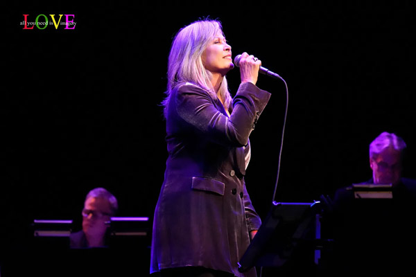 The auditorium lights dim and musicians including keyboardist Keith Cotton, bassist Michael O’Brien, drummer Eric Halvorson, and musical director/pianist Billy Stritch take the stage. The crowd cheers as Linda Eder makes her entrance.