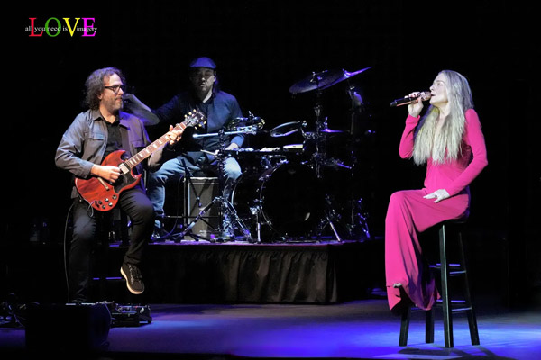 Anton Nesbitt’s walking bass line leads Rimes and Co. into “Blue” where Rimes effortlessly sings up, down, and around the melody, her beautiful, rich, clear honey-coated tone delighting the crowd. Hagan renders a vintage ‘50s-style guitar solo while Hirano plays his drums with brushes before the crowd cheers for Rimes’ vocal gymnastics along with the work of her accomplished musicians.