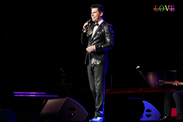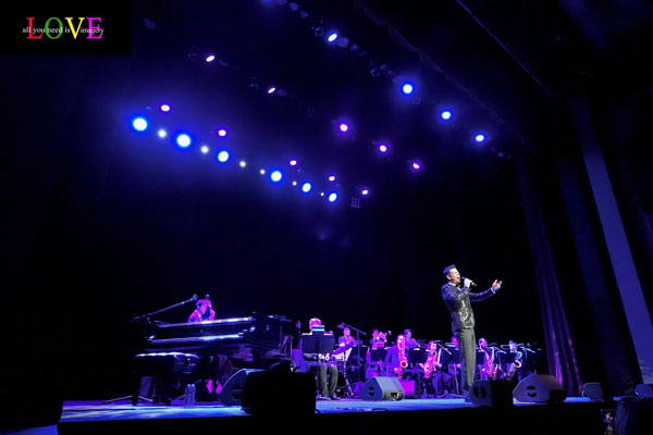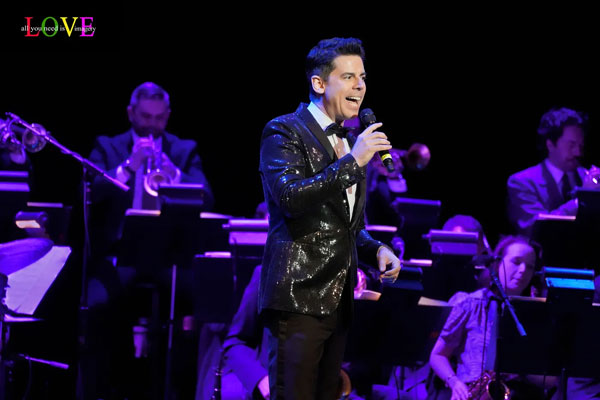 The lights dim and the members of DeSare’s 16-piece big band take the stage. The musicians glide into a swinging version of Frank Sinatra’s “Come Fly with Me” as DeSare makes his entrance looking dapper in his black sequined jacket. In his rich baritone voice he sings, “Come fly with me/Let’s fly, let’s fly away” before the band is spotlighted on an instrumental interlude where DeSare greets the crowd, inquiring, “How are you doing, Morristown?”