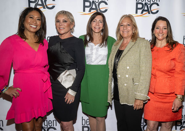 (L to R) ABC-NY 7 Reporter Nina Pineda who served as event emcee, Honoree Wendy Federman, 15-time Tony Award-winning theater and film producer, First Lady Tammy Murphy, bergenPAC's Board Chair, Valerie V. Huttle and bergenPAC's Director of Development, Amy Ferrante-Martin.