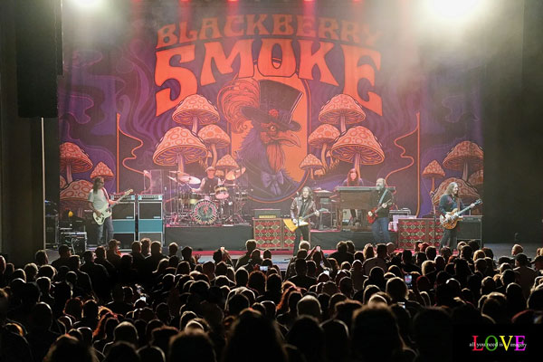 Following intermission, music lovers stand and cheer as the members of Blackberry Smoke — lead vocalist/guitarist Charlie Starr, background vocalist/guitarist Paul Jackson, guitarist Benji Shanks, keyboardist Brandon Still, bassist Richard Turner, and drummer Kent Aberle — take the stage.