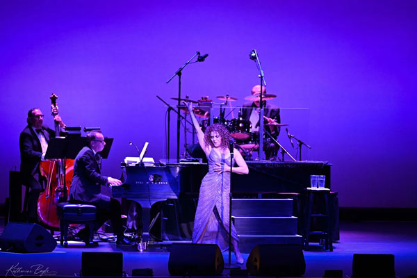 After announcing, “This next Rodgers and Hammerstein song comes from the movie, State Fair,” Peters delivers on a gentle swing arrangement of “It Might as Well Be Spring.” Then, before acting out an emotional rendition of “In Buddy’s Eyes” from Sondheim’s Follies, Peters introduces her band members, pointing out that bassist Kevin Axt performed with Luciano Pavarotti, pianist Ted Firth accompanied Liza Minnelli, and drummer Cubby O’Brien was an original Mouseketeer on TV’s The Mickey Mouse Club.