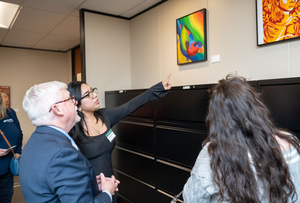 The showcase includes art from students and recent alumni of all majors, levels, and mediums – including painting, photography, and sculpture. The goal of this exhibit is to highlight student achievement in a visible, celebratory way that fosters pride, builds connections, and inspires future students to see the value of an education rooted in creativity and self-expression.