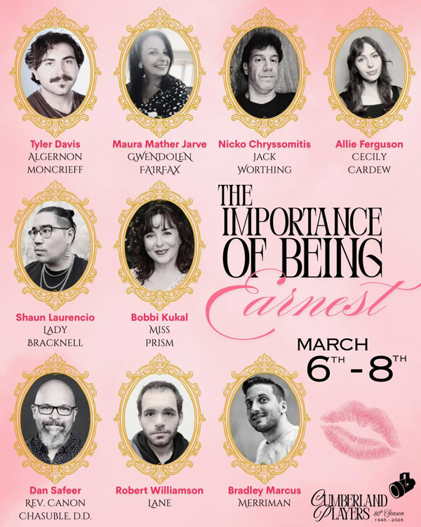 (VINELAND, NJ) -- Cumberland Players presents The Importance of Being Earnest from March 6-8, 2026. Oscar Wilde's classic is a delight from the first cucumber sandwich on as Jack's double life catches up with him.