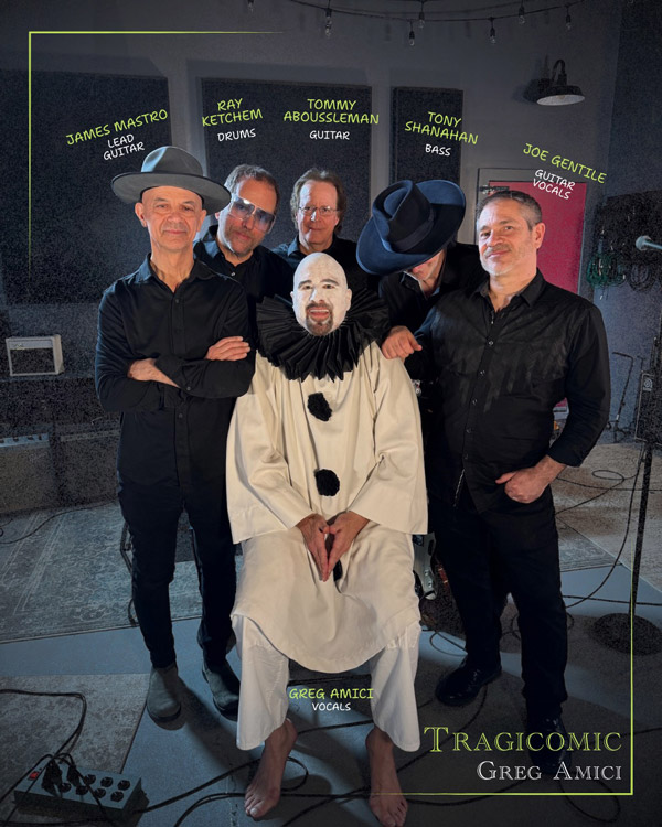 I have a cadre of all-stars in my band(s). The cream of the New Jersey crop. I have to maintain an army because these guys are in demand, and it’s very difficult to get them all in one place at the same time. I’ve worked with Joe Gentile (rhythm guitar, vocals) and Tommy Aboussleman (guitar) for half a century, so I would say that they are the core of my band, and both play on ‘Tragicomic.’ I have my Long Island contingent with Joe, Pat Vertucci (drums), and Arron DiCesare (bass). Otherwise, we’ve got Dennis DiBrizzi (keys), Larry Heinemann (bass), and Jair-Rohm Parker Wells (bass) on board — all fantastic players and great guys.