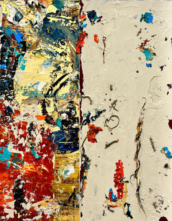 "New Gestalt #1" by Anne Novado, oil, canvas, metal on panel, 14 x 11 inches