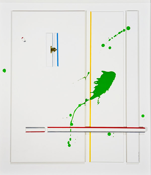 "21st Century Convergence, n. 2" by Eleazar Sanchez, assemblage: acrylic, beveled cotton board, metal on board, 22 x 19 inches