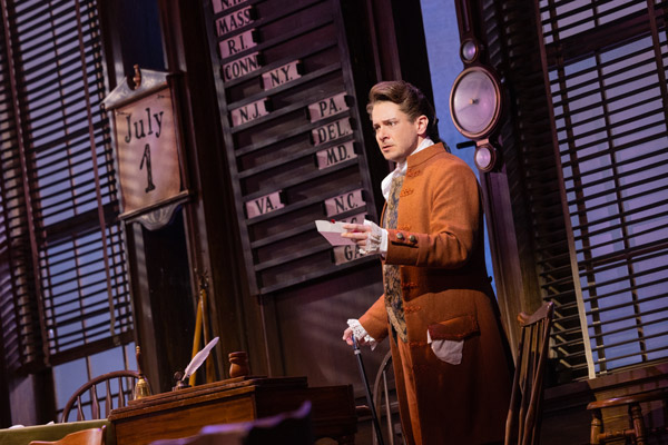 The cast also features Joey Birchler as Lewis Morris, Jonathan Chisolm as Samuel Chase, Peyton Crim as Col. Thomas McKean, Aaron De Jesus as Robert Livingston, Sam Faustine as Dr. Lyman Hall, Philip Hoffman as Stephen Hopkins, Alec Ludacka as James Wilson, Kruz Maldonado as Leather Apron/Painter, Tuck Milligan as Andrew McNair, Stanton Morales as George Read, Jay Russell as Caesar Rodney, Bryan Seastrom as Dr. Josiah Bartlett, Paul Slade Smith as Rev. John Witherspoon, Graham Stevens as Joseph Hewes, Price Waldman as Charles Thomson, and Branch Woodman as Roger Sherman. Understudies are Noah LaPook and Claire Leyden.