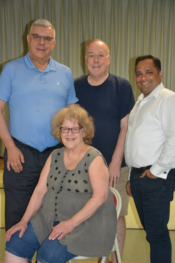 The director and producers of The Musical Comedy Murders of 1940 are: (seated, front row) director Maren Sugarman; and producers (back row, l to r) John Traier, Mark Peterson and Prashant Arora.