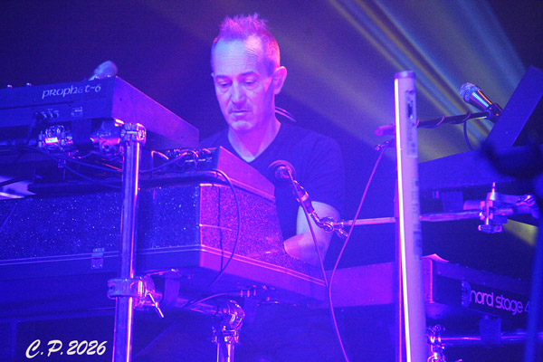 Without a break, UM plunged into Hourglass, originating in 2014 this song led by the vocals of Brendan Bayliss (guitar) and the space in sound on space is dotted by the electric tweaks of Joel Cummins (keys). Transitioning into 2009’s Mantis. This song is a notable blend of all UM offers. A raucous metal opening, Joel’s ivory strokes, Brendan’s melodies and subtleties on his guitar, and an overall harmonic vibe to the band. Halfway through, Scotty’s soft touch on the stick opens a high dance groove. This danceability was a keynote of difference between today’s UM and the past mentioned by a friend to me throughout the show. Like the namesake ray gliding through a sea of harmony created by the unity on stage.