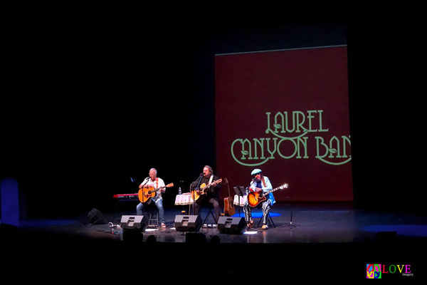 The members of the Laurel Canyon Band take the stage and Mark Hudson says, “Good evening, everybody!” as the musicians launch into CSN’s “You Don’t Have to Cry.” Tight three-part harmonies ring out as the trio sings, “In the mornin’, when you rise/Do you think of me and how you left me cryin’?” accompanied by the strumming of Gary Burr’s and Mark Mirando’s acoustic guitars and Hudson’s jingling tambourine.