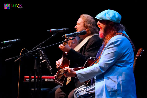 Hudson models his colorful open-toed shoes for the crowd before moving over to the keyboard for a jamming version of “Long Time Comin’.” The trio follows up with “Only Love Can Break Your Heart,” featuring Burr singing lead accompanied by himself and Hudson on acoustic guitars and Mirando at the keyboard.