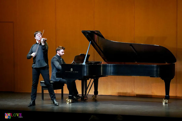 During intermission, patrons comment on tonight’s performance thus far. Remarks Stella from Princeton, “This is such a treat; I’m thrilled to be here! I’ve always wanted to see Joshua Bell — he’s a class act — and it’s such an intimate concert; I truly feel like I’m enjoying a show in my living room. Plus, Joshua’s wife, Larisa, is very skilled technically and she and Joshua are a beautiful couple which makes the evening that much more special.”