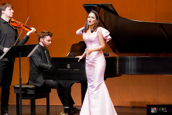On Bellini’s “Oh! Quante Volte” from I Capuleti e I Montecchi, Martínez sings with power and skill using her gaze to help communicate the emotion of the composition. Supported by Dugan’s piano accompaniment, she produces a vocal filled with nuance and color which elicits avid applause from music lovers in the crowd.