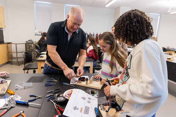 “I love how they are teaching us different things that we don’t really learn in school,” said Voss, who took Trout’s Lasers and Lissajous Figures workshop. She worked with a partner to build a device to display laser figures on a wall. “Like lasers, I haven’t done that in school.