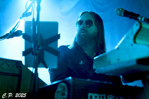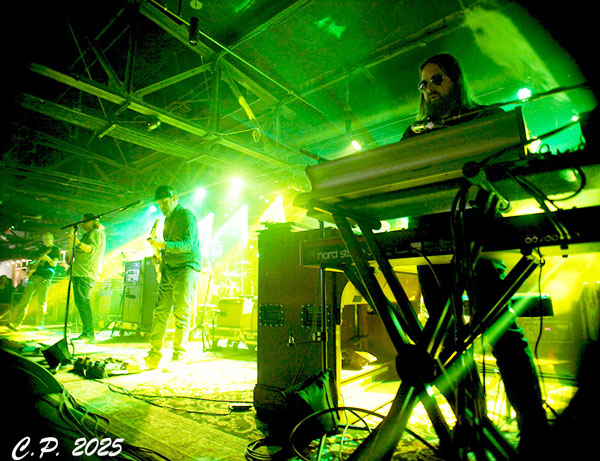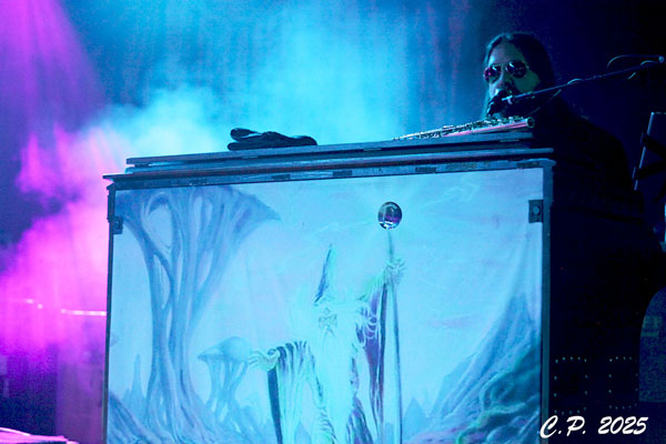 This transitioned into “Wormwood” a musical interlude and psychedelic toe dip into the larger pool that came next thanks to a cover of Pink Floyd’s “Fearless”. This cover choice radiated so well with the “Circle of Giants” 70’s classic rock feel and I smiled with delight at the wizard surrounded by happy little spores painted on Nate Wilson (keys) keyboard rig.