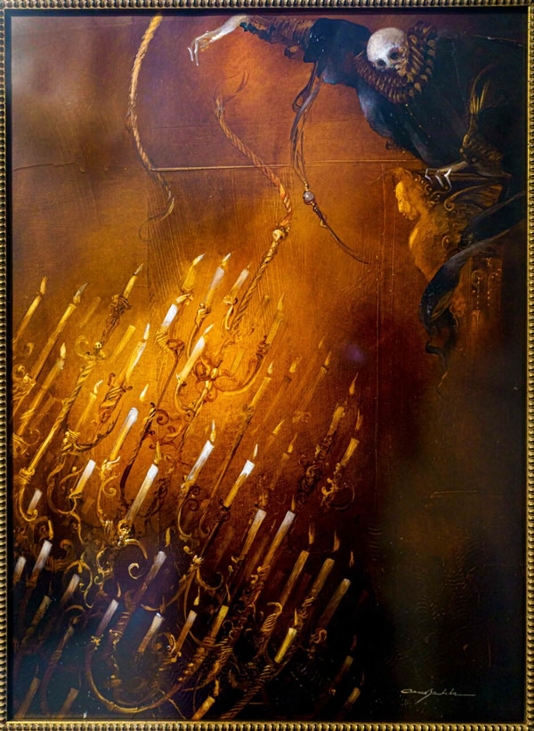 Bachelier’s style, dealing largely in metamorphosis and chimeras, falls right in line with the Skylands Museum’s mission. According to Ailene Fields, “Our mission [is] to create a haven for Magic/Surrealism/Fantasy and Representational art; to tell the stories that make us human. I’m so pleased to have begun to accomplish that and to have people of all ages leave the museum smiling.” She goes on to express that their mission extends to bringing “new ways of approaching art to the public that honor the stories as well as the artists’ vision. These amazing Phantom of the Opera paintings are our first exhibit to do this. Anne’s creativity and techniques exemplify a unique vision, which we are very pleased to present to our growing arts community.”