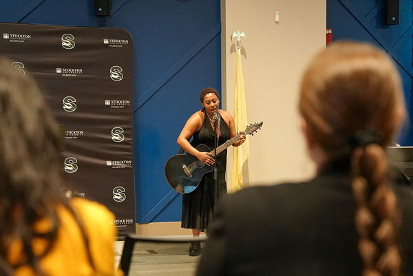 Stockton student Braelynn Cooper performs at the beginning of the summit. Photo credit: Lizzie Nealis/Stockton University