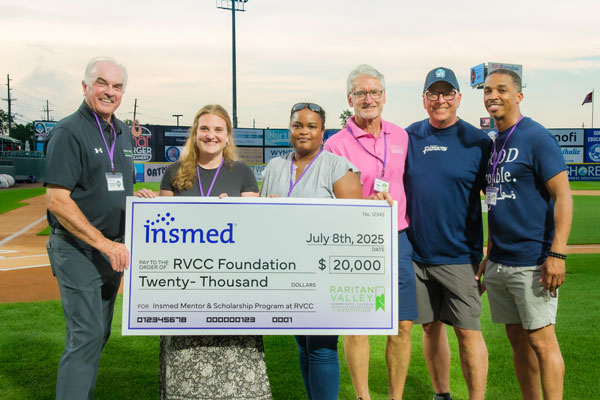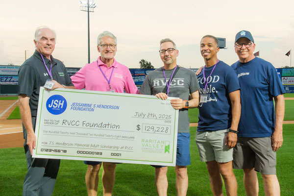Also featured in pre-game ceremonies were on-field check presentations to RVCC from Deirdre Blaus, Chief Administrative Officer, Robert Wood Johnson University Hospital Somerset; Bill Haas, Senior Vice President, Labcorp; Lindsay Bevan, Associate Director, Social Impact & Philanthropy, Insmed Incorporated; and Andy Manno, former RVCC Professor and President of the J.S. Henderson Adult Memorial Scholarship Board of Directors, representing the newly established “J.S. Henderson Memorial Adult Scholarship at Raritan Valley Community College.”