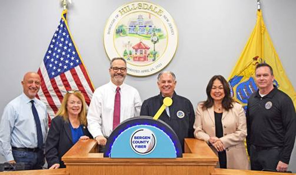 (HILLSDALE, NJ) -- Standing inside the Council Chambers at Hillsdale Borough Hall, Bergen County Executive Jim Tedesco and County Commissioners Mary Amoroso and Germaine Ortiz joined Mayor Michael Sheinfield to mark the Borough's official connection to the Bergen Fiber Network—a high-speed, county-owned broadband system providing municipalities with faster, more secure internet service while cutting costs for taxpayers.