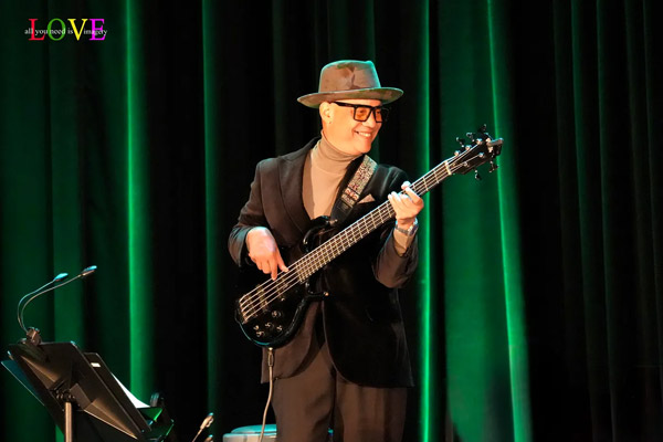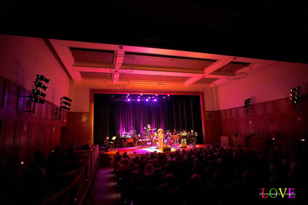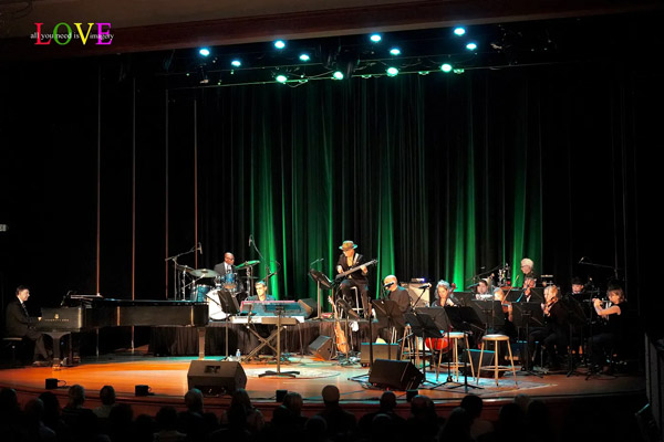 Kean Stage manager Steve Cochran welcomes the audience and introduces Mike Griot and the orchestra: Dave Malyszko on piano, Carl Burnett on guitar, Manu Koch on keyboards, Damon Duewhite on drums, and Ed Shea on percussion, along with string players Mary Babiarz, Amy Soto, and Carolyn Jeselsohn; woodwind players Lisa Hansen, Kenneth Ellison, and Ryan Marino; and brass players Thomas Boulton and Steve Friedman. The musicians take the stage and open today’s program with an instrumental overture of Bacharach’s “What the World Needs Now is Love” led by Griot on bass.