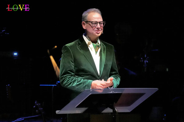 Mike Griot takes a moment to talk about how Burt Bacharach’s music made him feel as a youngster prior to thanking the orchestra members who stand for a round of applause. He concludes today’s performance with a rousing rendition of “What the World Needs Now is Love” where concertgoers sing along with the vocalists on the “What the world needs now/Is love, sweet love” refrain before standing and cheering for the performance.