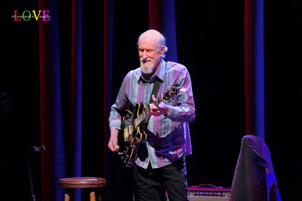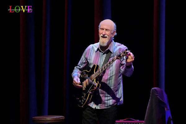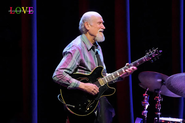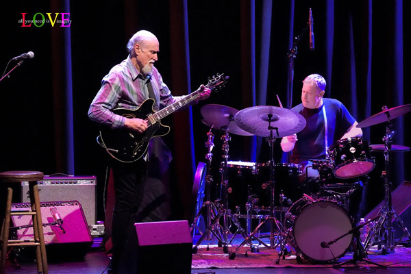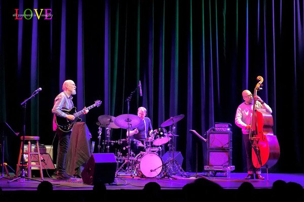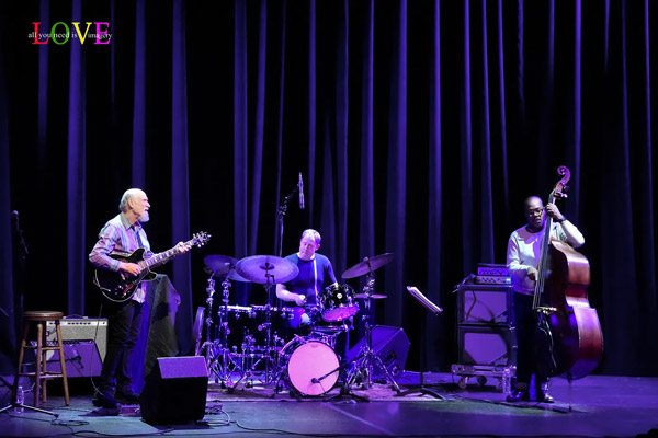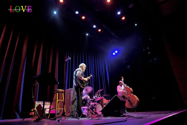 Music fans cheer and Scofield responds, “Thank you so much everybody! It’s so nice to see you and so great to be back at SOPAC!” before announcing, “Here’s a song by the great composer and musician, Carla Bley.” Caressing his guitar as he plays the introduction to “Lawns,” Scofield is soon joined by Archer and Stewart on this old-timey swing ballad. Stewart’s brushes swirl as Scofield solos before playing a descending line which Archer picks up on and carries along into his own thoughtful solo.