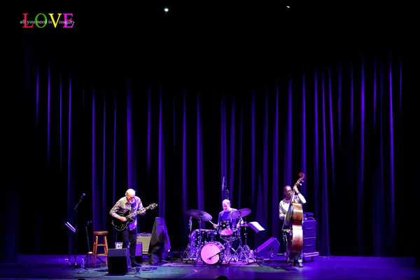 Concertgoers cheer as Scofield, bassist Vincente Archer, and drummer Bill Stewart take the SOPAC stage and open tonight’s performance with “Blue Monk” where Scofield picks out the melody while Archer walks on the bass and Stewart rides the cymbals on this swinging Thelonious Monk composition.