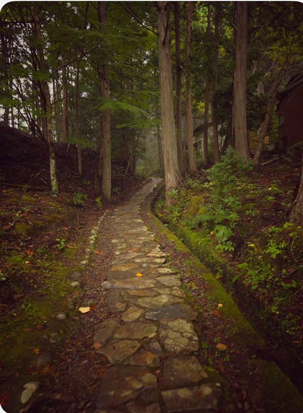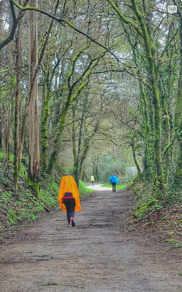 Erin and Luke - The cobblestones were brutal, especially when wet. It rained non-stop. The path was slippery and hard on your feet. The uphill sections were easier to enjoy. It felt peaceful walking between trees and wooded areas.