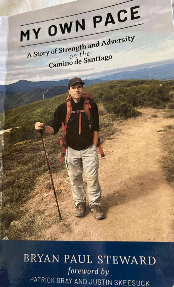 The book was called, My Own Pace: A Story of Strength and Adversity on the Camino de Santiago, written by Bryan Paul Steward. It is about his son's recent trek thru Portugal and then from Santiago to Finisterre, walking the Camino de Santiago.