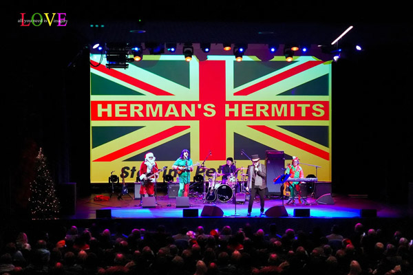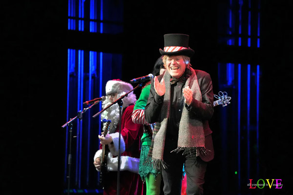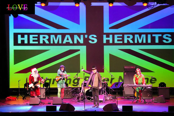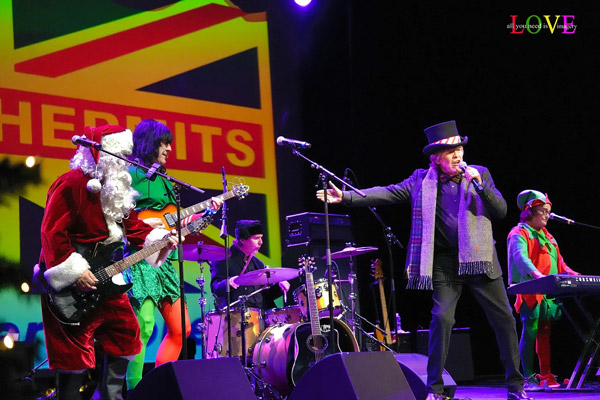 Returning to the stage, Sullivan — along with Brescia, Spina, and drummer Dave Ferrara — launch into the 1964 Herman’s Hermits’ hit, “I’m Into Something Good,” as Peter Noone, wearing a top hat, makes his entrance exclaiming, “Merry Christmas!” Concertgoers joyfully sing along to the song’s upbeat “Something tells me I’m into something good” chorus before Noone and the band segue into the Hermits’ 1965 remake of the 1960 Sam Cooke hit, “Wonderful World.”