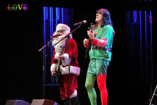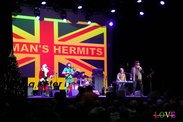 Inside the Carteret PAC auditorium, the lights dim and guitarist Vance Brescia and keyboardist Rich Spina take the stage dressed as elves and render a soft instrumental version of “Greensleeves” as, off stage, Peter Noone dramatically recites the poem, “The Night Before Christmas.” At the conclusion, guitarist Billy Sullivan, dressed as Santa Claus, makes his way down into the audience where he dances and prances to a recording of “Sleigh Ride.”