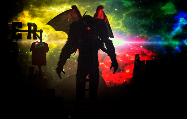 The Devil & Daisy Dirt erupted several years ago in Dawson’s fiery imagination after a serendipitous stop at Lucille’s Luncheonette in Warren Grove, New Jersey, where an eight-foot carving of the Jersey Devil welcomes visitors. It has since been brought to life in numerous backwater barns, backstreet bars, and the occasional small theater, where it has grown and evolved to its current form: a blend of folkloric storytelling, stirring Americana music performed by a porch-sitting balladeer, and a larger-than-life monster with glowing eyes that may or may not be a figment of your imagination.