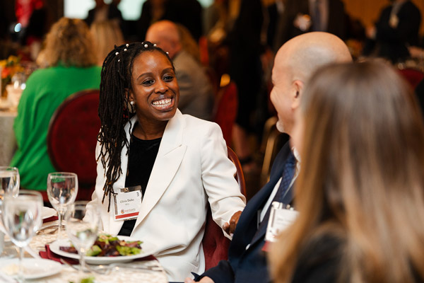 When purchasing tickets, attendees select five conversationalists they are interested in. Upon arrival at Great Conversations, they'll find out which one of their five choices they will be seated with at dinner. During the cocktail hour guests can mingle with other conversationalists, colleagues, and attendees.