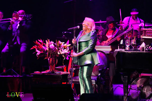 “Thank you for spending your hard-earned money for a Patti LaBelle show!” exclaims LaBelle before introducing backup singer, Debra Henry, who delivers a soulful rendition of “Hold On (Change is Coming),” after which Patti presents her with a flower.