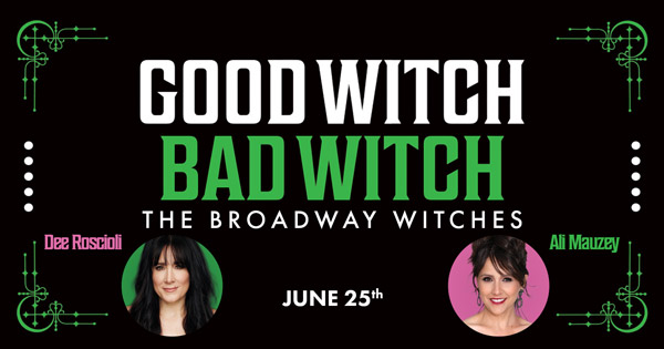 Your witches for the evening are former Glinda and Elphaba Ali Mauzey (Wicked, Hello, Dolly) and Dee Roscioli (Wicked, Death Becomes Her).